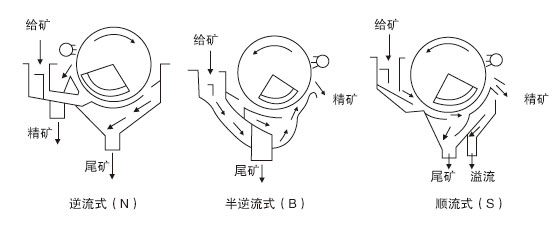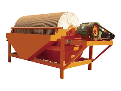 其原理是當(dāng)?shù)V漿進入磁場區(qū)時,其中強磁性礦物被吸附在圓筒表面,弱磁性和非磁性礦物被甩掉排出,而吸附在圓筒表面的強磁性礦物隨圓筒旋轉(zhuǎn),被帶出磁場區(qū),用沖洗水沖入精礦槽中,完成分選作業(yè)。